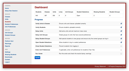 Prophet is a student class selection sorter that automates the administratively heavy task of creating a grid of classes and placing students in them. It does this by allowing students to assign priorities to their classes, indicating which classes are more important to them. The program then uses this data with existing school class data to produce the best possible fit for both the students and the school.